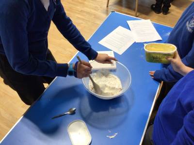 Last year the Year 6 children designed and made their own version of Hot Cross Buns so they refreshed their skills and helped support the Year 5 children. This year the whole class made gluten free Hot Cross Buns with one group also making them dairy free too!