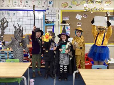 We had some amazing costumes on show and the buzz of books was evident all around the school. In classes the children: wrote their own poems; paraded their costumes on a catwalk; reviewed books they had read; completed some book illustrations based on famouns illustrators; and the older children went over to Early Years to read to the younger children of the school - a magical time.