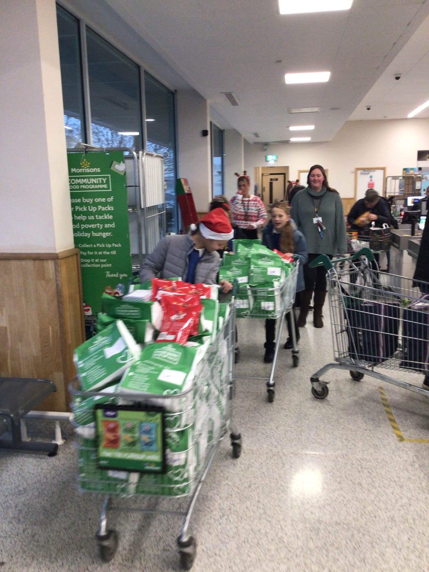 Throughout the school year, Amelie, Fleur, and Sophie have been collecting money to help support C.H.A.T – a local food bank in Tiverton. The children independently organised the creation and sale of their craft products to raise funds, and they made an astonishing £224.95. We then contacted Suzanne, Morrisons Tiverton's Community Champion, who arranged for C.H.A.T’s pre-made bags to be prepared so all the funds could purchase items that C.H.A.T themselves had highlighted as needed. It was wonderful to see the community coming together to help those in need over the Christmas period. The children were assisted by both Zara and Keira, who work at Morrisons – and they also presented the three with a gift to show their appreciation.