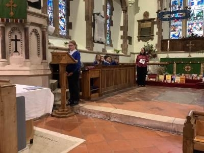 'It's another harvest festival...' where our Sampford families showed great generosity once again in providing donations to support CHAT in Tiverton. The children in Oak were very excited as this was their first trip to the church and first harvest festival. As always, the children sang with great enthusiasm and showed great spirituality when sharing things they are thankful for with many of them mentioning their families and friends.