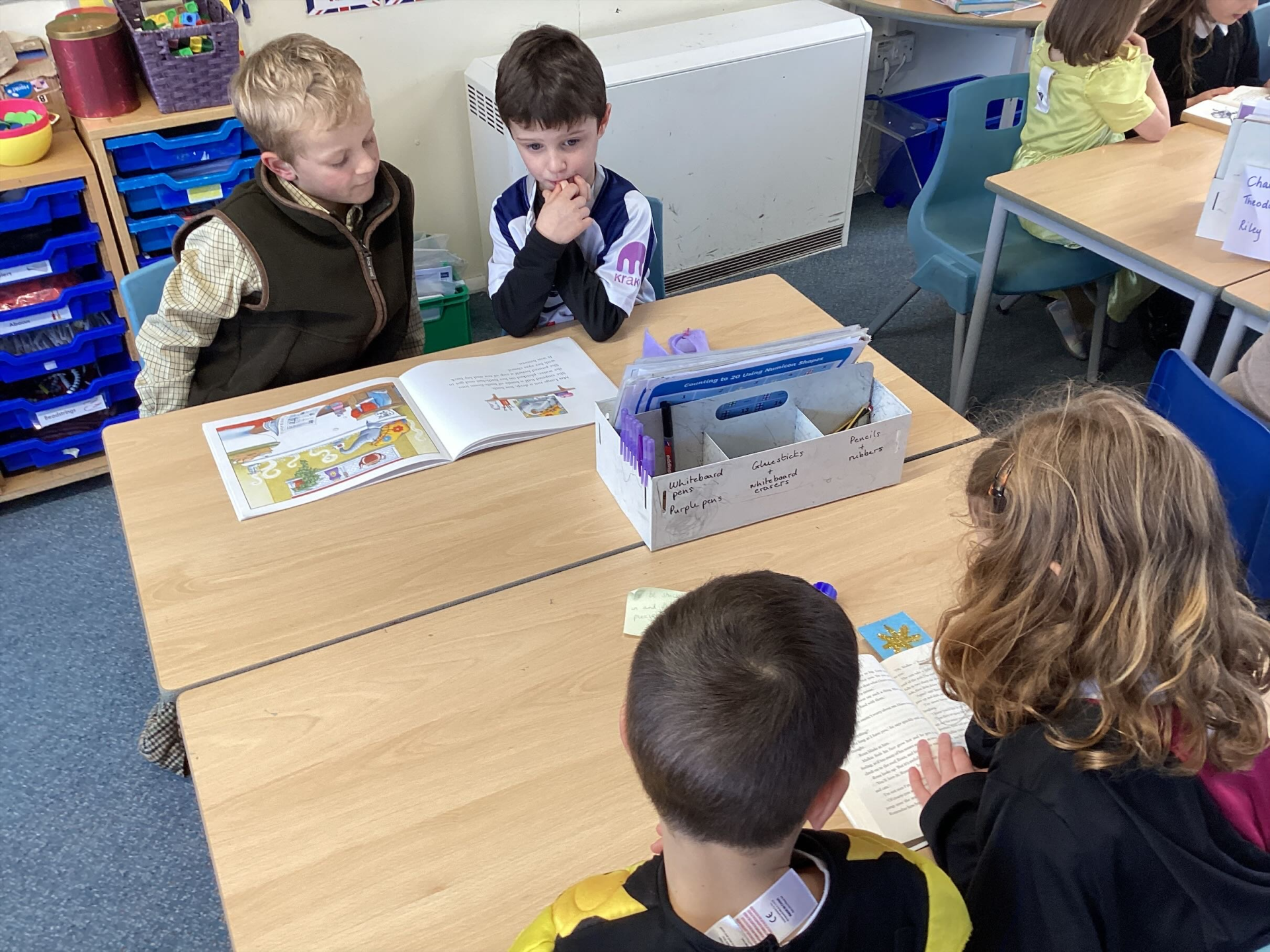 We had some amazing costumes on show and the buzz of books was evident all around the school. In classes the children: wrote their own poems; paraded their costumes on a catwalk; reviewed books they had read; completed some book illustrations based on famouns illustrators; and the older children went over to Early Years to read to the younger children of the school - a magical time.